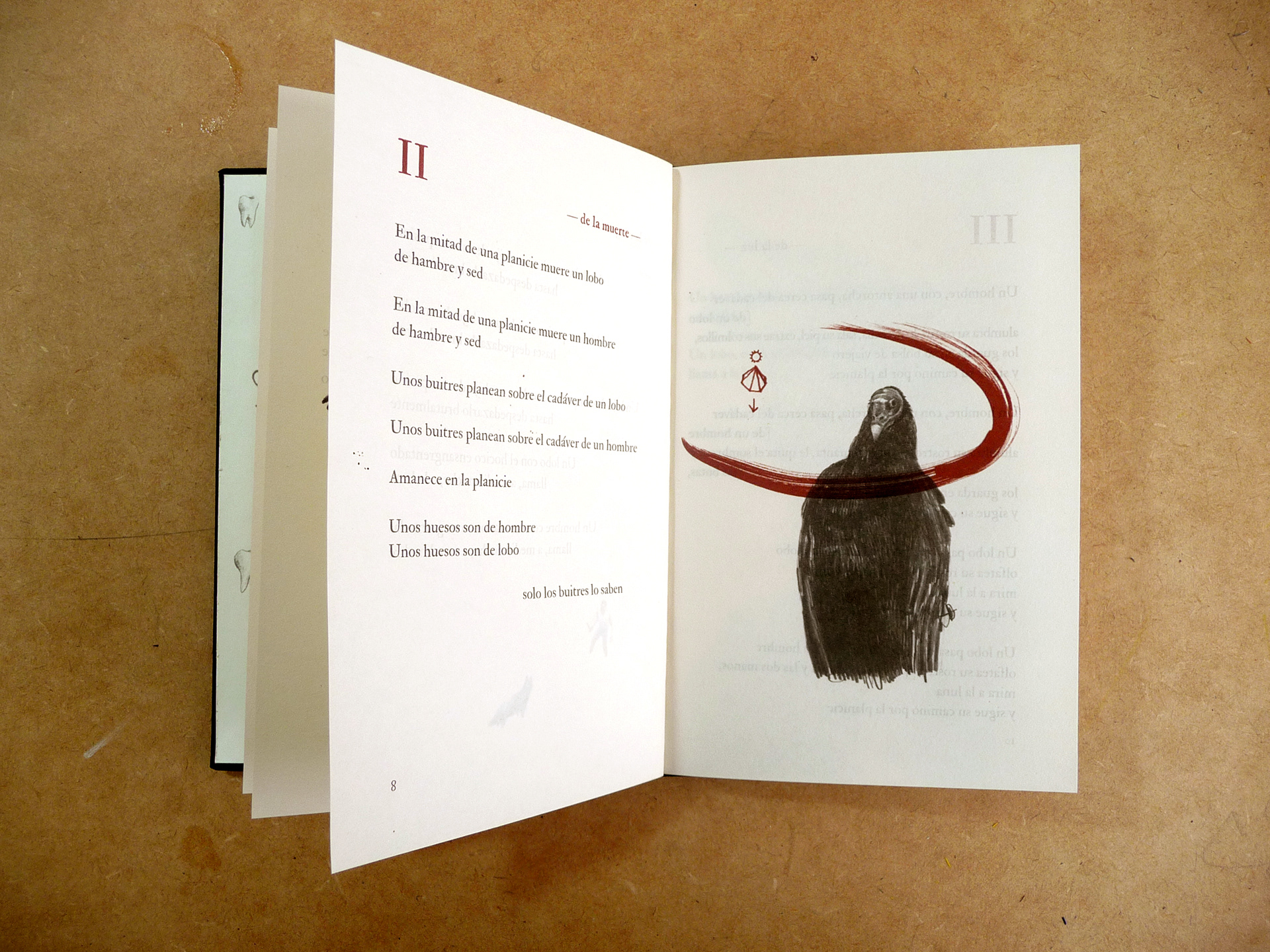 Libro de poesía ilustrado "Los 16 motivos del lobo" escrito por Amalia Moreno. Publicado por Cardumen.