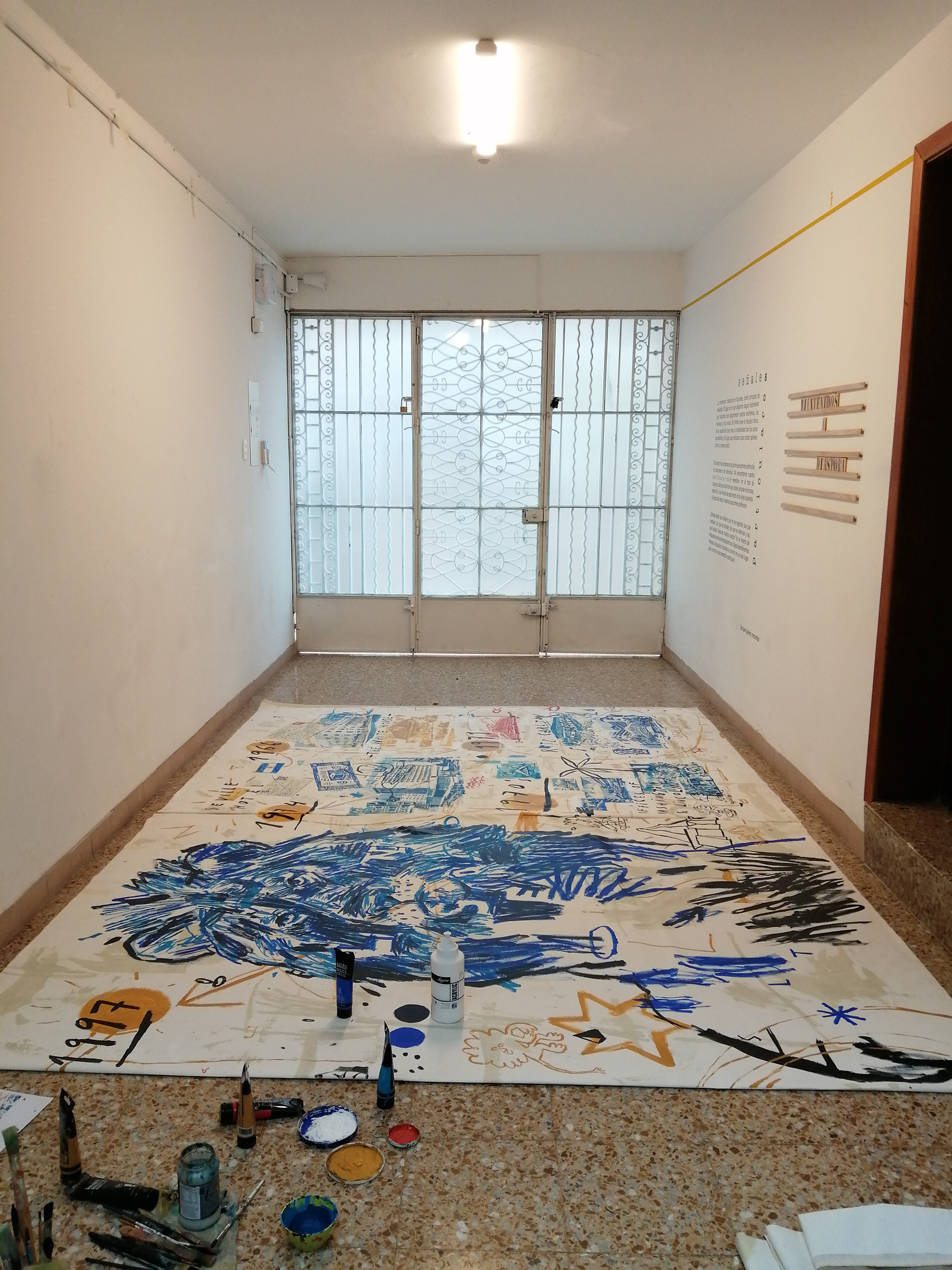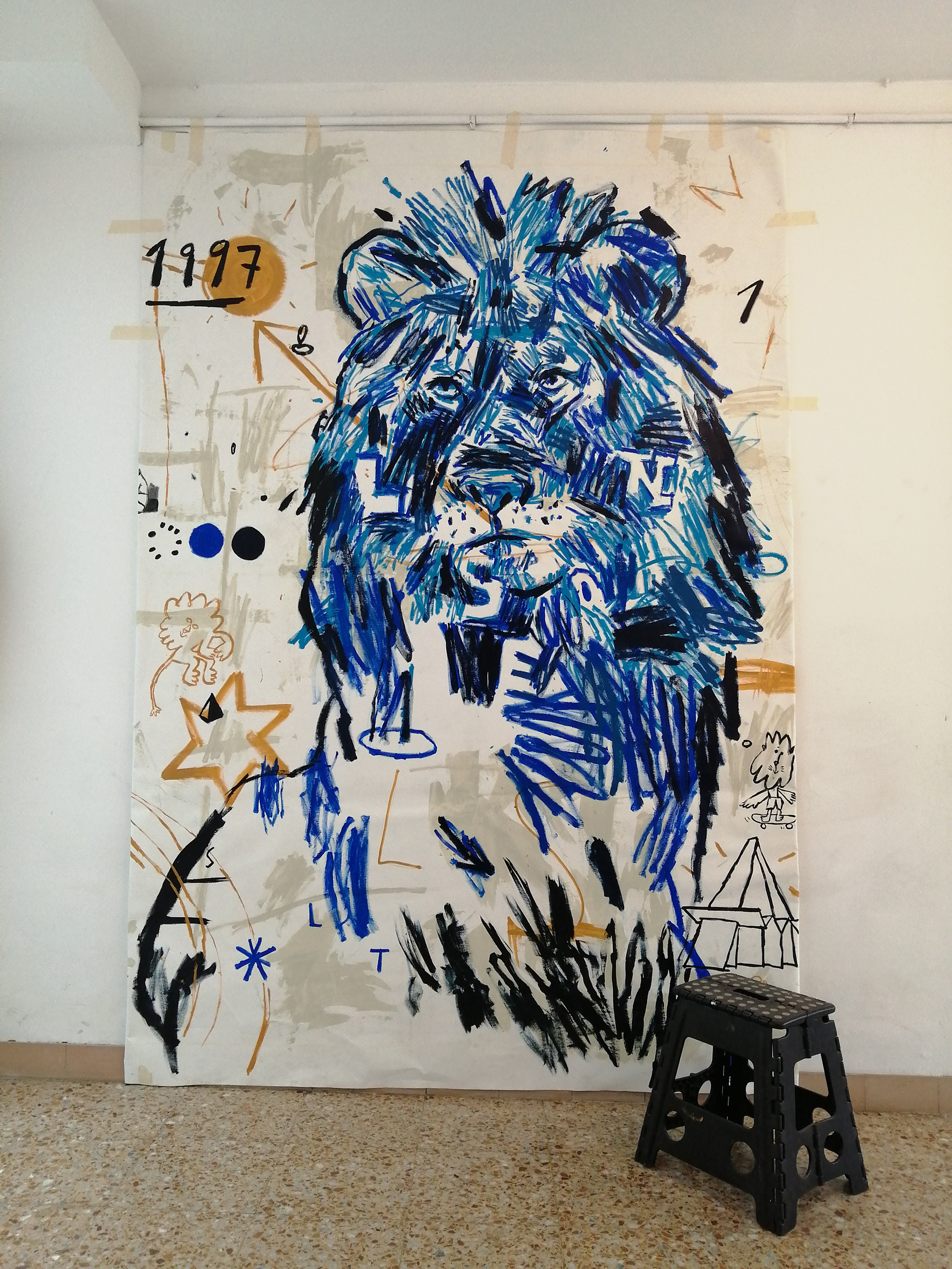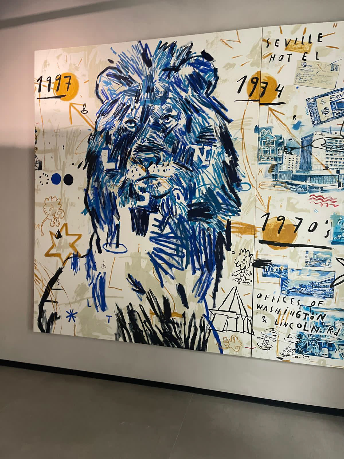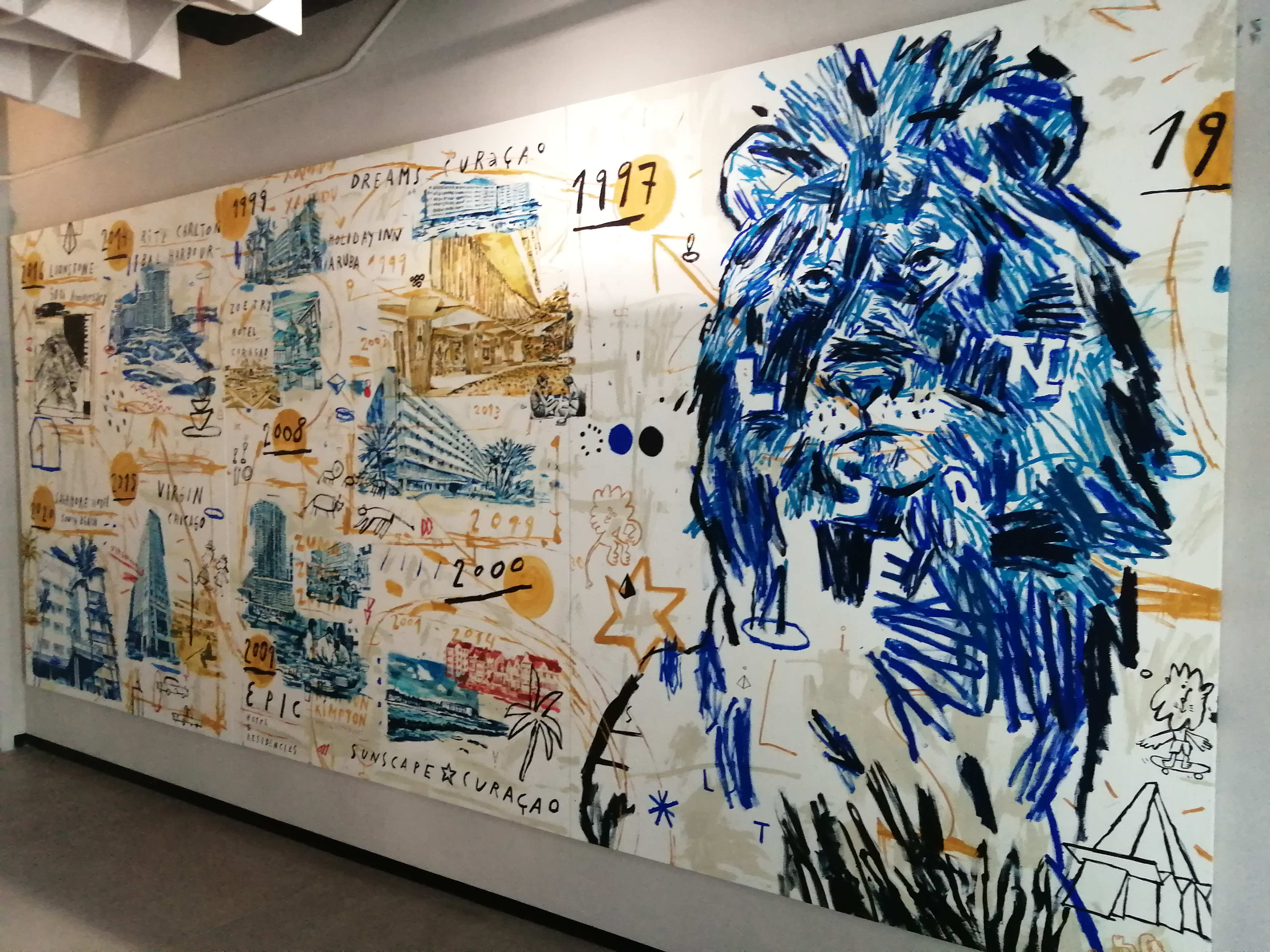 Four-panel, large-format,100% hand-made painting on fabric, conceived to be displayed at the entrance of the Lionstone headquarters in Miami, Florida.