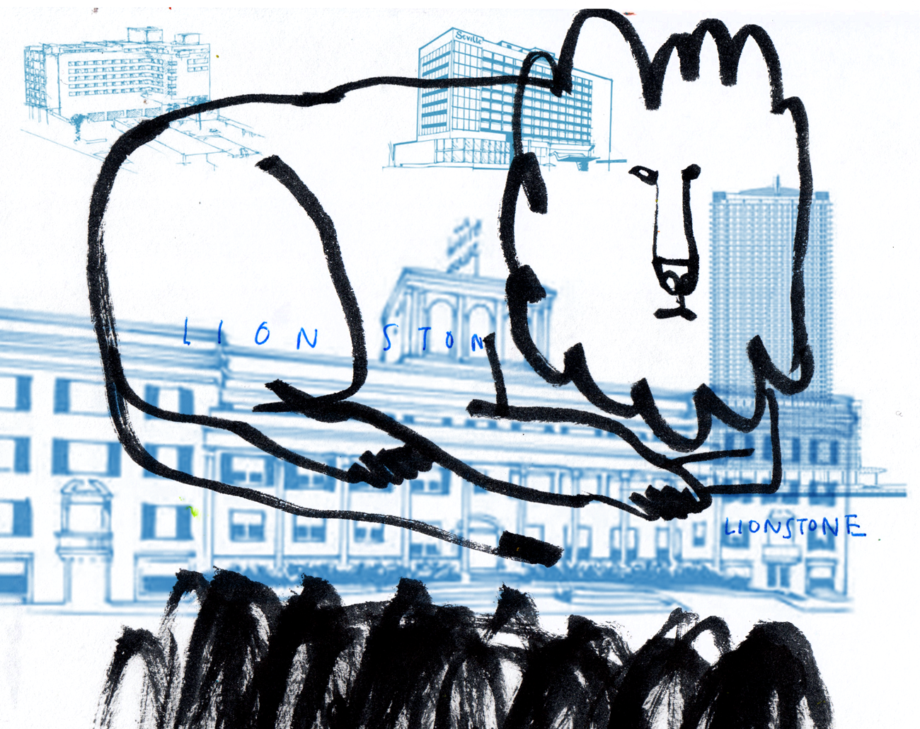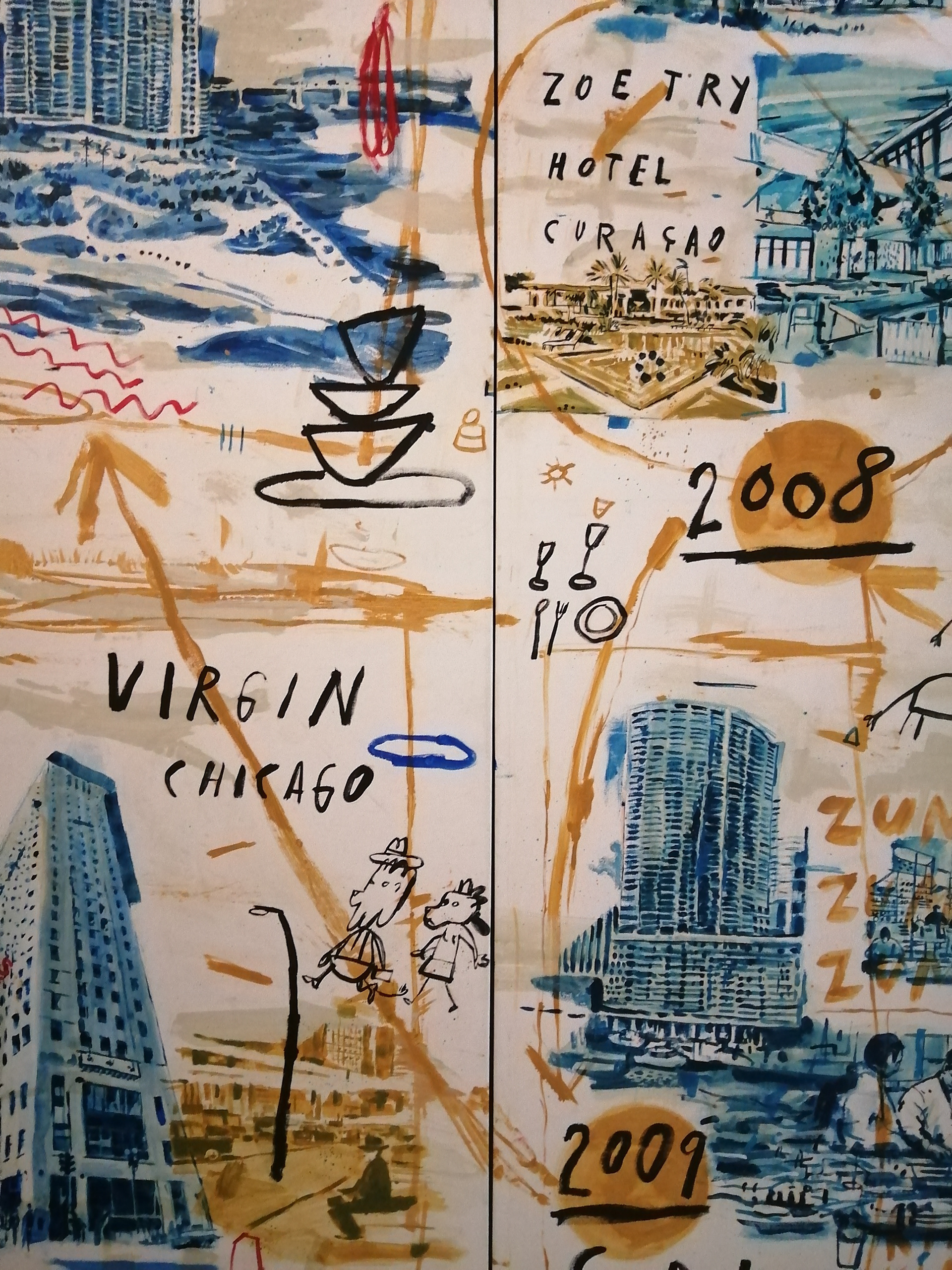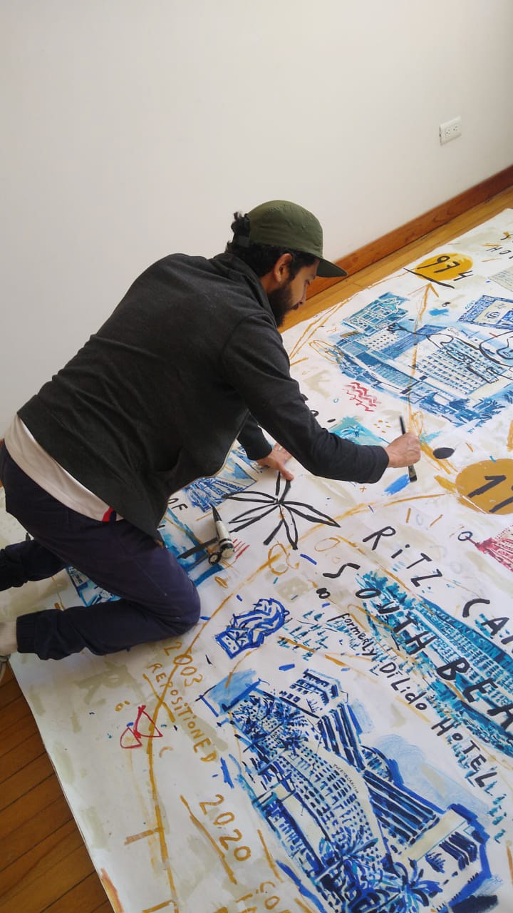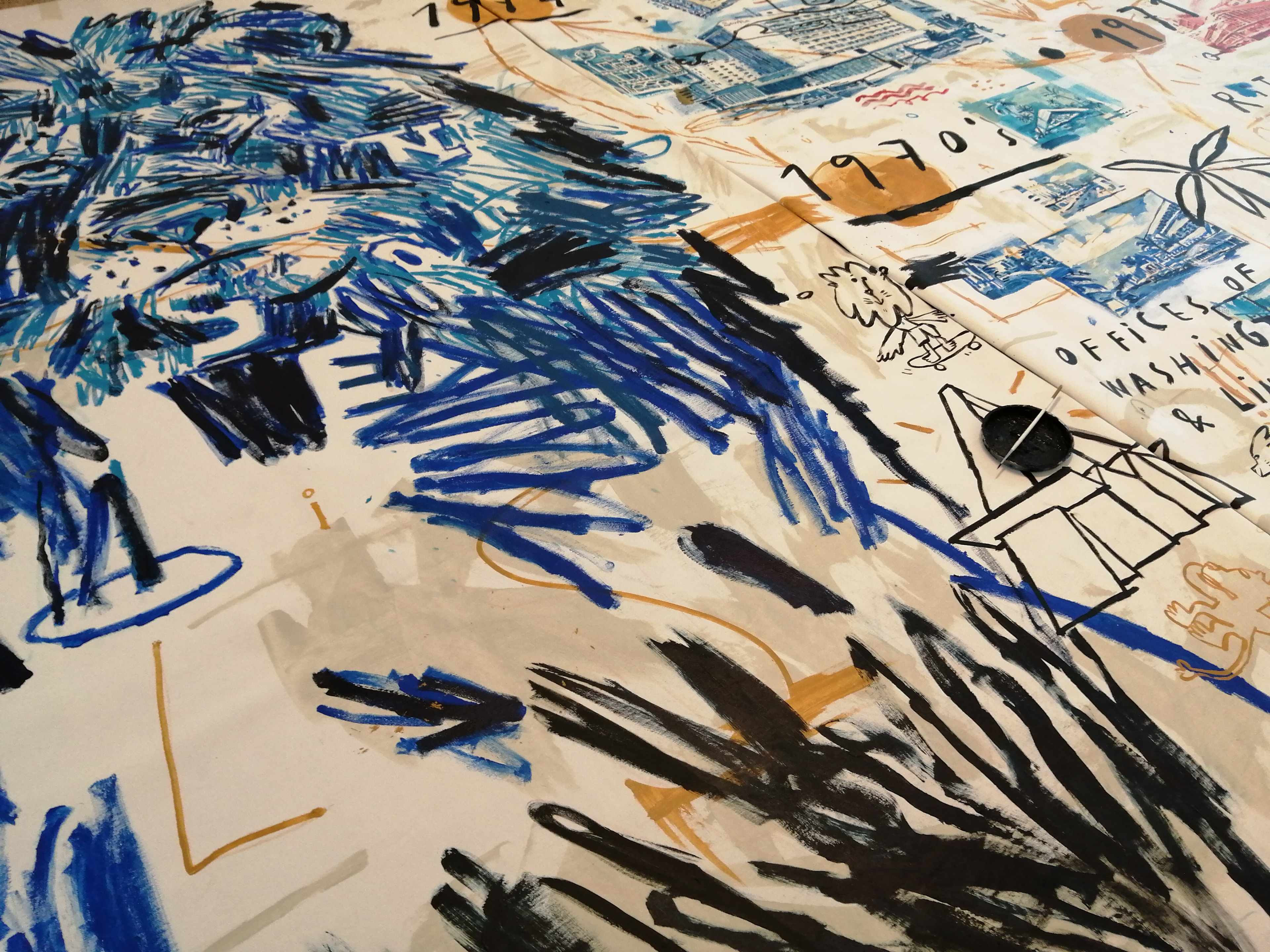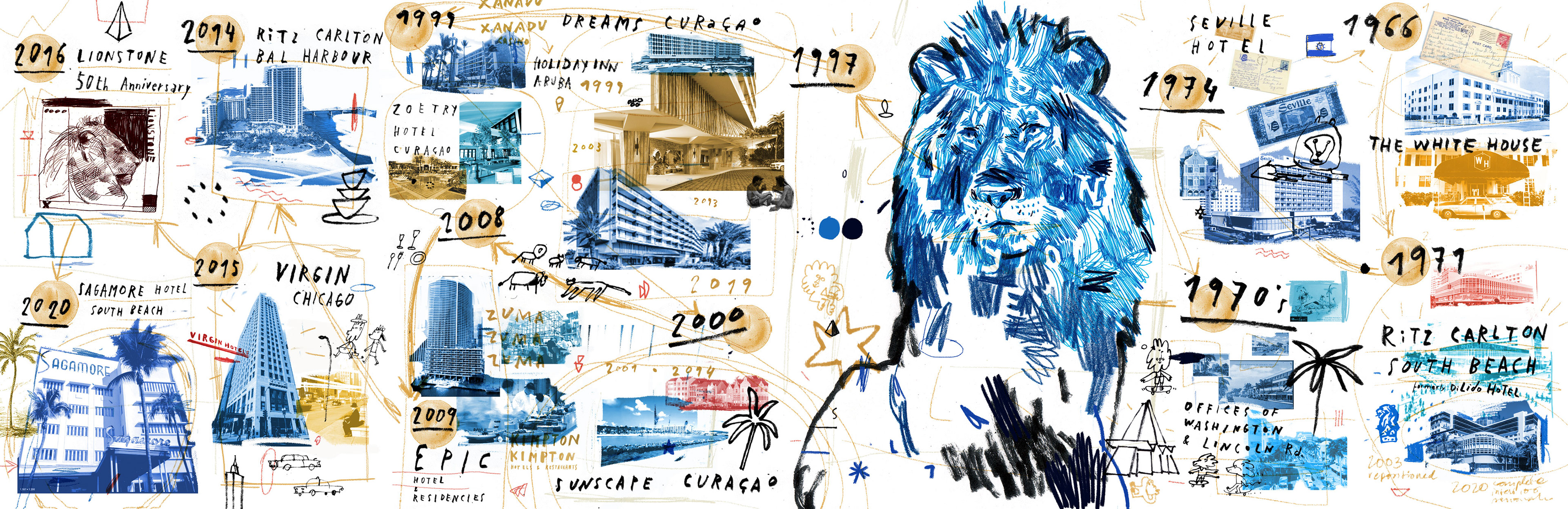 Four-panel, large-format,100% hand-made painting on fabric, conceived to be displayed at the entrance of the Lionstone headquarters in Miami, Florida.