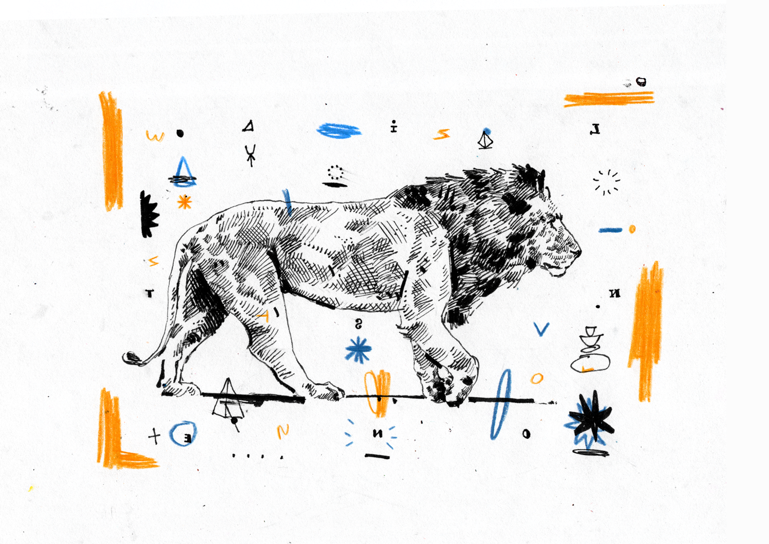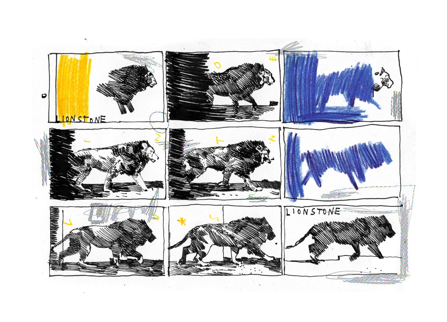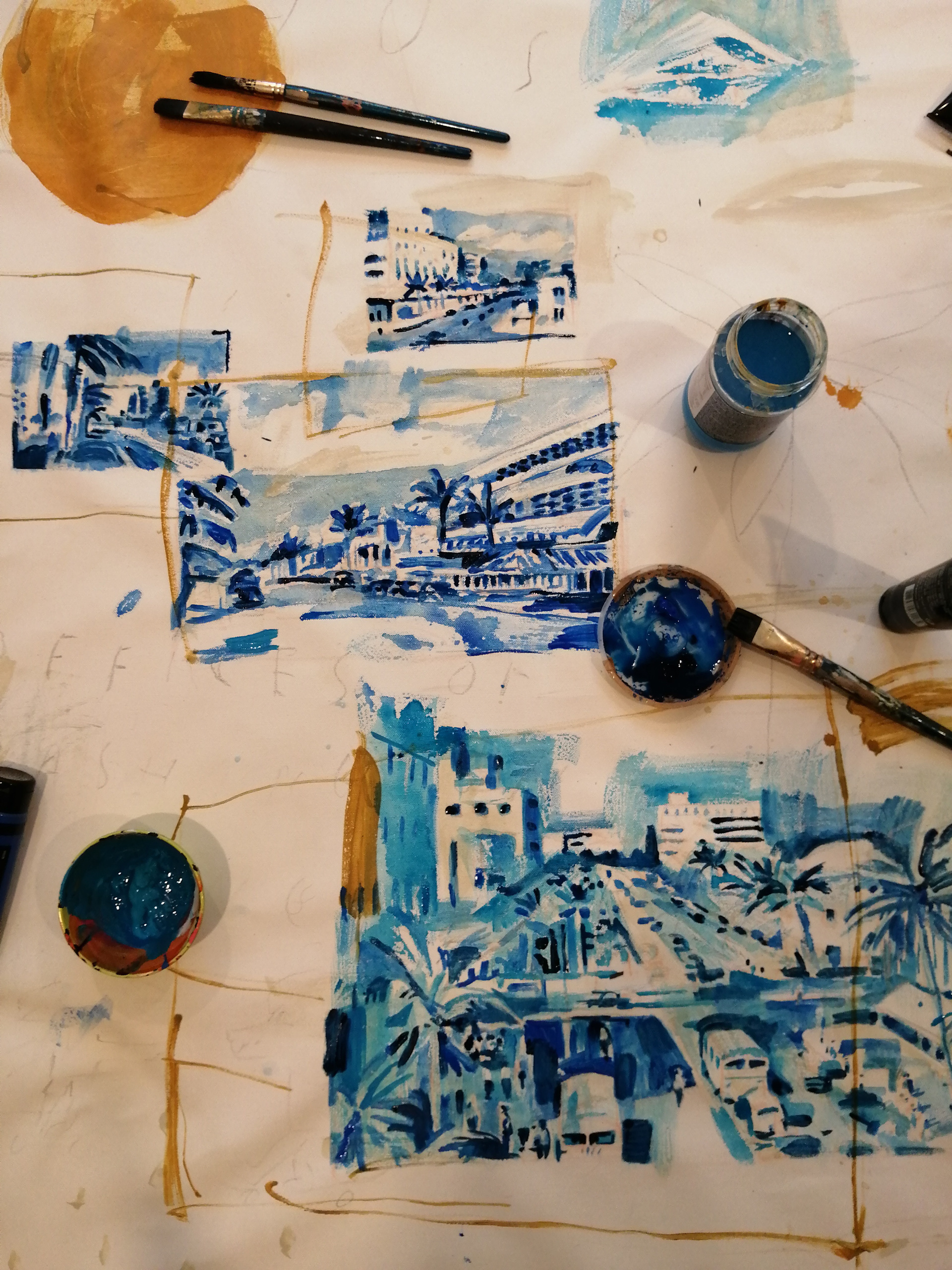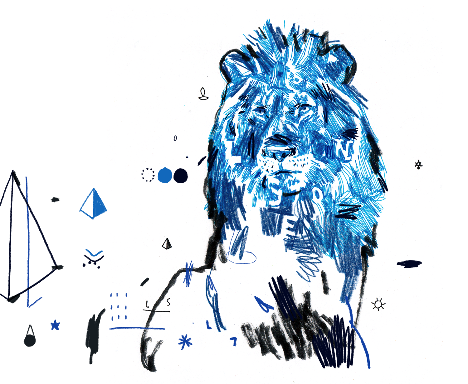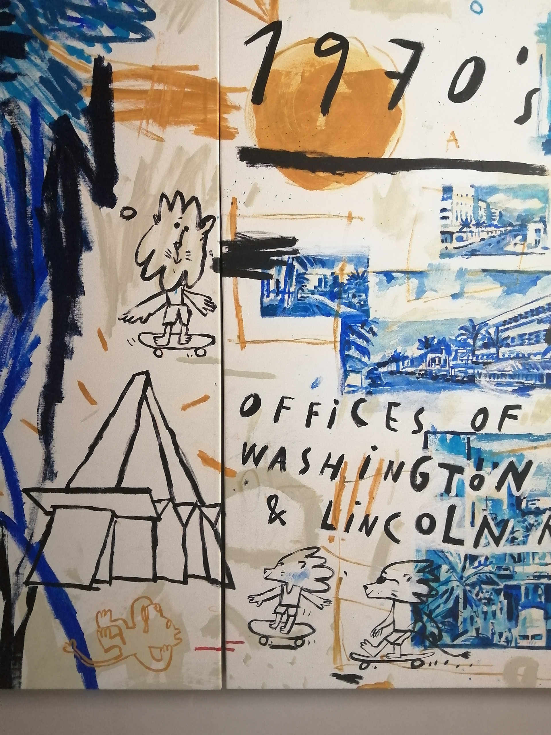 Four-panel, large-format,100% hand-made painting on fabric, conceived to be displayed at the entrance of the Lionstone headquarters in Miami, Florida.